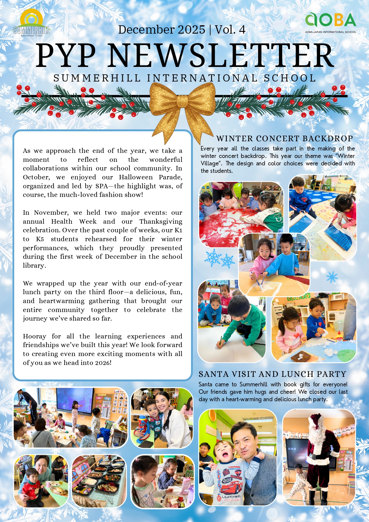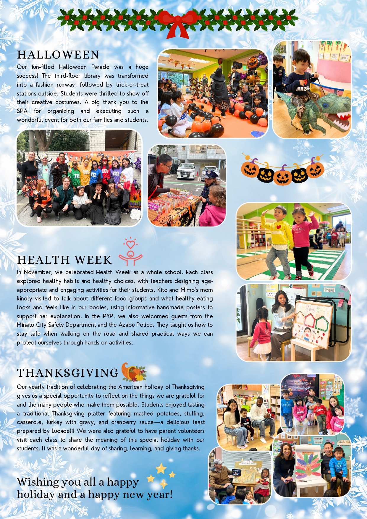 Our December PYP Newsletter highlights many of the meaningful moments our children experienced over the past few months — from the Halloween Parade and Health Week to our Thanksgiving celebration and magical winter performances.