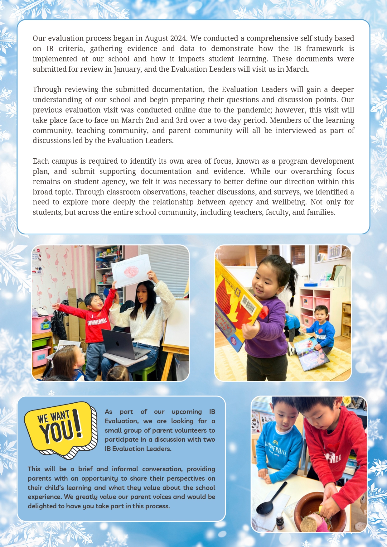 Please check our January/February edition for updates and highlights from our PYP community, including our upcoming IB evaluation.
